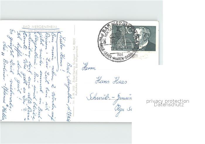 72108485 alte Postkarte Bad Mergentheim Hoch Deuschtmeisterschloss postalisch gelaufen Erhaltung siehe scans KatCode: 11110008128007