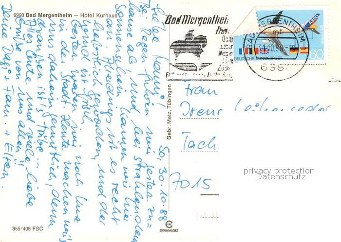 72972579 alte Postkarte Bad Mergentheim Hotel Kurhaus postalisch gelaufen Erhaltung siehe scans [FriedD77] KatCode: 11110008128007