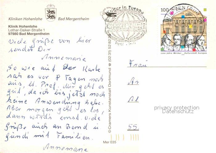 72831932 alte Postkarte Bad Mergentheim Klinik Hohenlohe im Winter postalisch gelaufen Erhaltung siehe scans [FriedD77] KatCode: 11110008128007