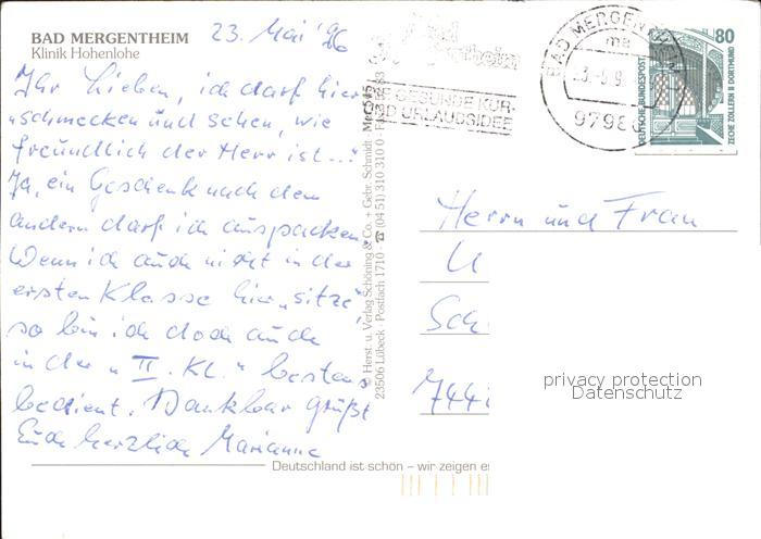 72306462 alte Postkarte Bad Mergentheim Klinik Hohenlohe postalisch gelaufen Erhaltung siehe scans KatCode: 11110008128007