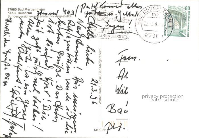 72287660 alte Postkarte Bad Mergentheim Klinik Taubertal postalisch gelaufen Erhaltung siehe scans KatCode: 11110008128007