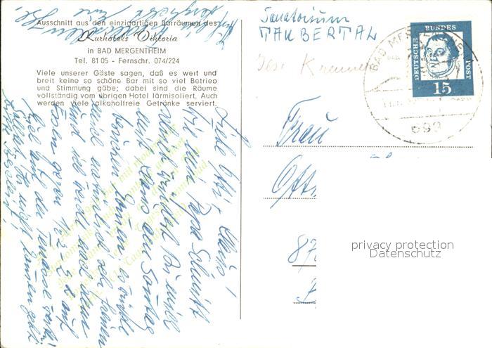 72251389 alte Postkarte Bad Mergentheim Kuhotel Viktoria postalisch gelaufen Erhaltung siehe scans KatCode: 11110008128007
