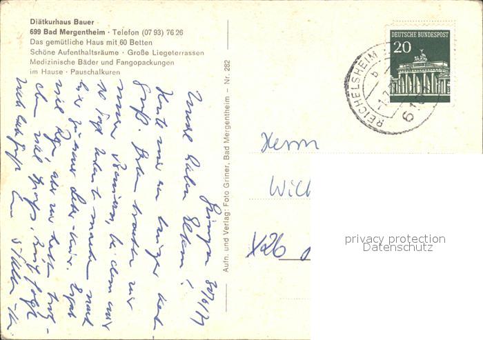 71998799 alte Postkarte Bad Mergentheim Kuranstalt Bauer postalisch gelaufen Erhaltung siehe scans KatCode: 11110008128007