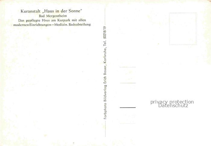 74099659 BAD MERGENTHEIM Kuranstalt Haus in der Sonne Gastraum postalisch nicht gelaufen Erhaltung siehe scans [WerneD78] Wern Katcode 11110008128007