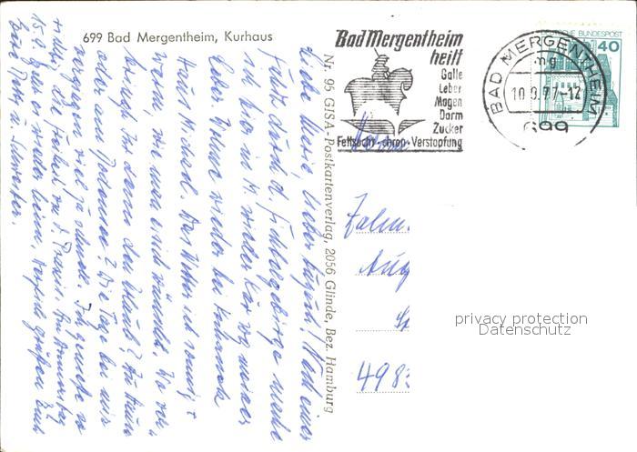 72371550 alte Postkarte Bad Mergentheim Kurhaus postalisch gelaufen Erhaltung siehe scans KatCode: 11110008128007