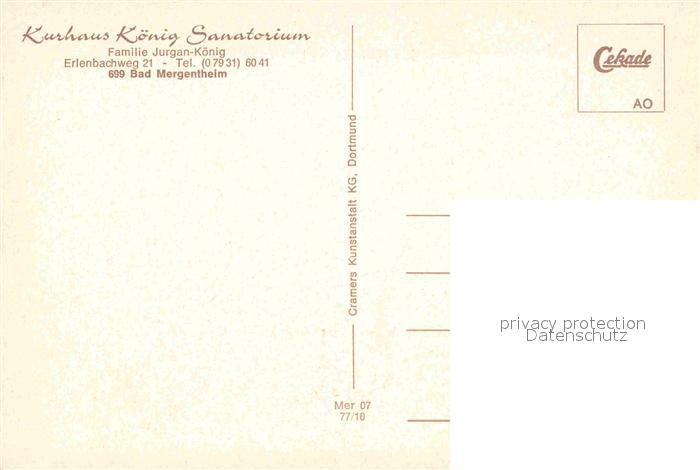 72773658 Bad Mergentheim Kurhaus Koenig Sanatorium postalisch nicht gelaufen Erhaltung siehe scans [AndreD76] KatCode: 11110008128007