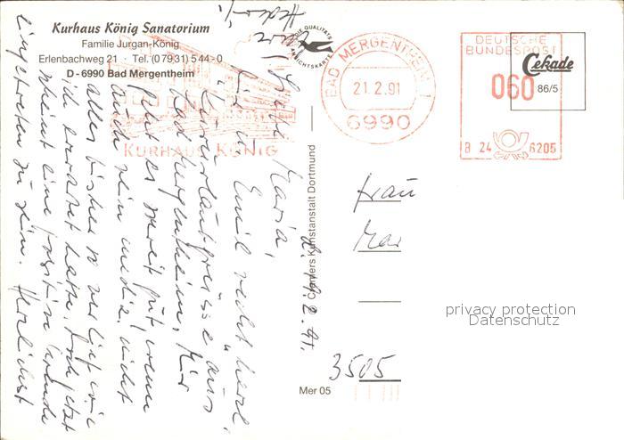71993327 alte Postkarte Bad Mergentheim Kurhaus Koenig Sanatorium postalisch gelaufen KatCode: 11110008128007