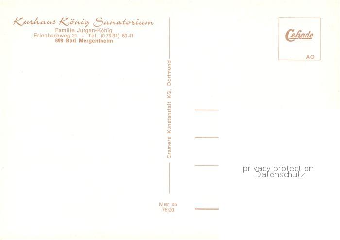 73066438 Bad Mergentheim Kurhaus Koenig Sanatorium Hallenbad postalisch nicht gelaufen Erhaltung siehe scans [FriedD77] KatCode: 11110008128007