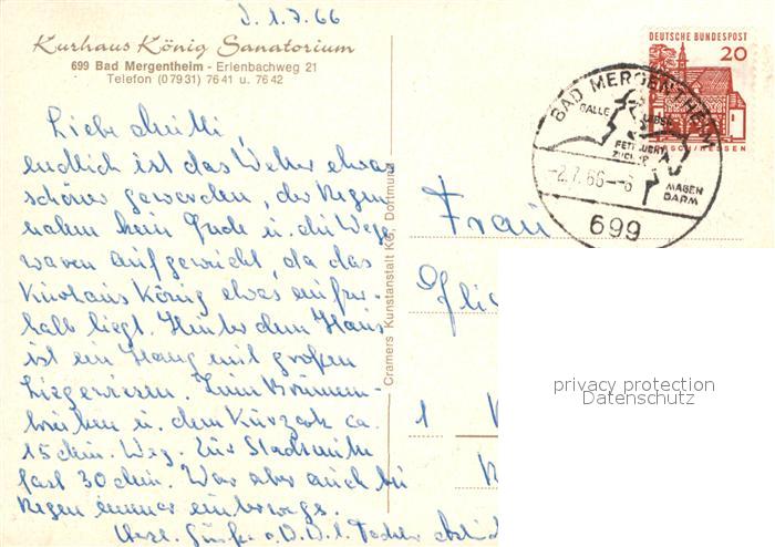 72961854 alte Postkarte Bad Mergentheim Kurhaus Koenig postalisch gelaufen Erhaltung siehe scans [NatalD47] KatCode: 11110008128007