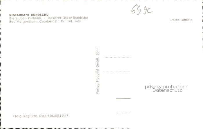 41586576 Bad Mergentheim Kurheim Restaurant Bundschu Fliegeraufnahme postalisch nicht gelaufen Erhaltung siehe scans Alte Ansichtskarte Postkarte hz_F Katcode 11110008128007