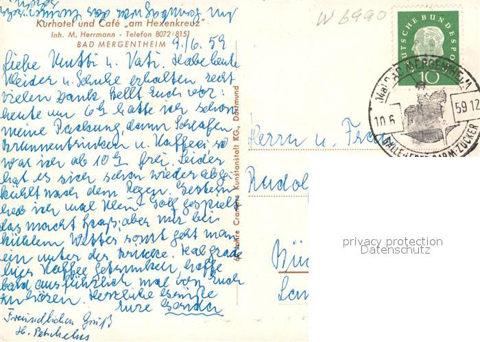 73093904 alte Postkarte Bad Mergentheim Kurhotel Cafe am Hexenkreuz postalisch gelaufen Erhaltung siehe scans [KathaD81] KatCode: 11110008128007