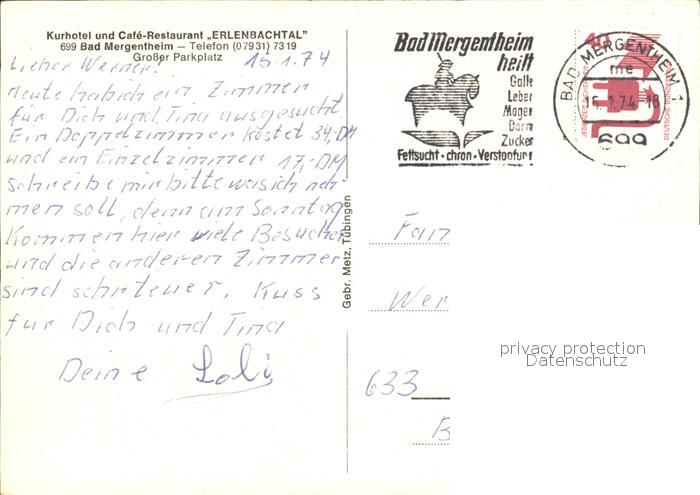 alte Postkarte Bad Mergentheim Kurhotel Cafe Restaurant Erlenbachtal postalisch gelaufen Erhaltung siehe scans