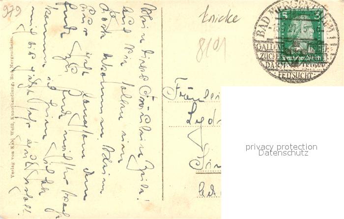 33116863 alte Postkarte Bad Mergentheim Kurhotel Hohenlohe postalisch gelaufen Erhaltung siehe scans [PaolaD17] KatCode: 11110008128007
