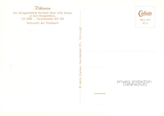 73864551 Bad Mergentheim Kurhotel Viktoria Hotelhalle postalisch nicht gelaufen Erhaltung siehe scans [WerneD78] KatCode: 11110008128007
