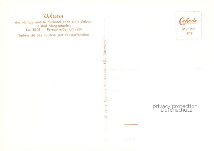 73864553 Bad Mergentheim Kurhotel Viktoria Teilansicht des Gartens mit Wasserfontaene postalisch nicht gelaufen Erhaltung siehe scans [WerneD78] KatCode: 11110008128007