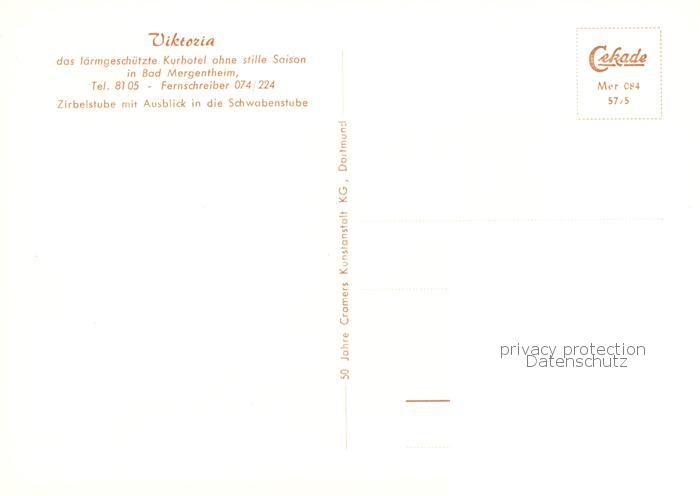 73864552 Bad Mergentheim Kurhotel Viktoria Zirbelstube mit Blick in die Schwabenstube postalisch nicht gelaufen Erhaltung siehe scans [WerneD78] KatCode: 11110008128007