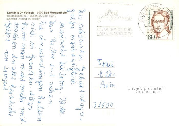 73685470 alte Postkarte Bad Mergentheim Kurklinik Dr Voetisch postalisch gelaufen Erhaltung siehe scans [WerneD78] KatCode: 11110008128007