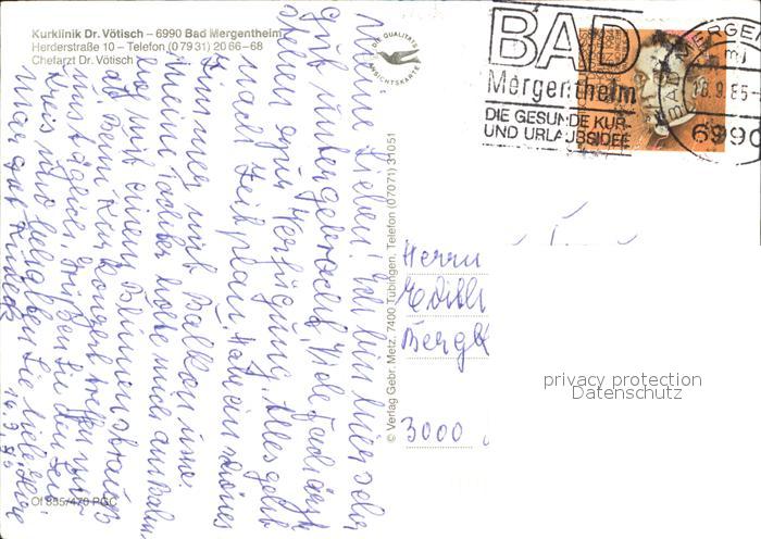72574083 alte Postkarte Bad Mergentheim Kurklinik Dr Voetisch postalisch gelaufen Erhaltung siehe scans [KathaD79] KatCode: 11110008128007