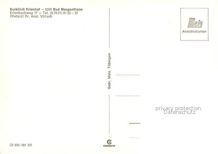 73571487 Bad Mergentheim Kurklinik Erlenhof postalisch nicht gelaufen Erhaltung siehe scans [WerneD78] KatCode: 11110008128007