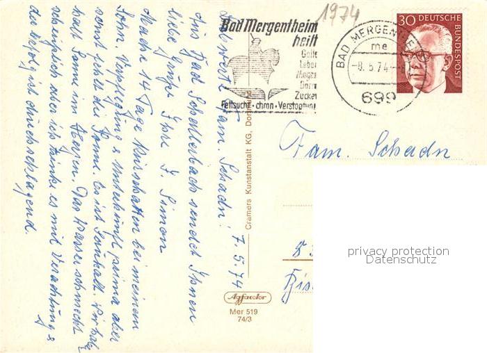 73062976 alte Postkarte Bad Mergentheim Kurpark Kurhaus Marktplatz Ortsmotive postalisch gelaufen Erhaltung siehe scans [FriedD77] KatCode: 11110008128007