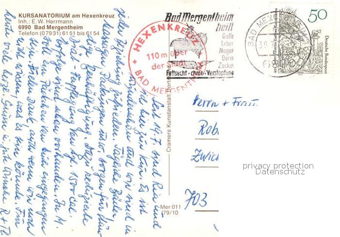 72931161 alte Postkarte Bad Mergentheim Kursanatorium Hexenkreuz postalisch gelaufen Erhaltung siehe scans [KathaD81] KatCode: 11110008128007