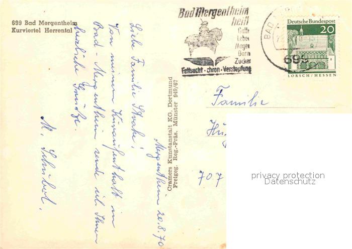 72835013 alte Postkarte Bad Mergentheim Kurviertel Herrental Fliegeraufnahme postalisch gelaufen Erhaltung siehe scans [FriedD77] KatCode: 11110008128007