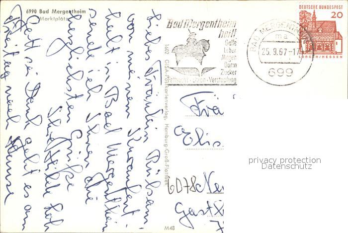 72098074 alte Postkarte Bad Mergentheim Marktplatz postalisch gelaufen Erhaltung siehe scans KatCode: 11110008128007
