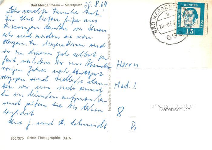 73038389 alte Postkarte Bad Mergentheim Marktplatz postalisch gelaufen Erhaltung siehe scans [KathaD81] KatCode: 11110008128007
