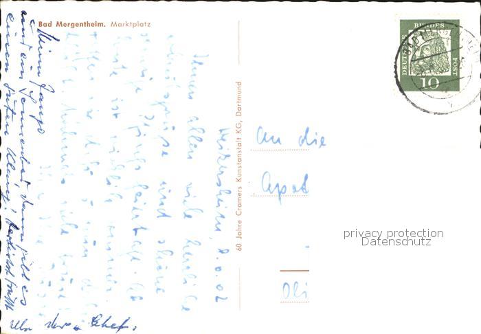 72578324 alte Postkarte Bad Mergentheim Marktplatz postalisch gelaufen Erhaltung siehe scans [AndreD76] KatCode: 11110008128007