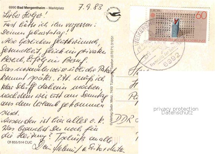 72624767 alte Postkarte Bad Mergentheim Marktplatz Brunnen postalisch gelaufen Erhaltung siehe scans [WerneD78] KatCode: 11110008128007