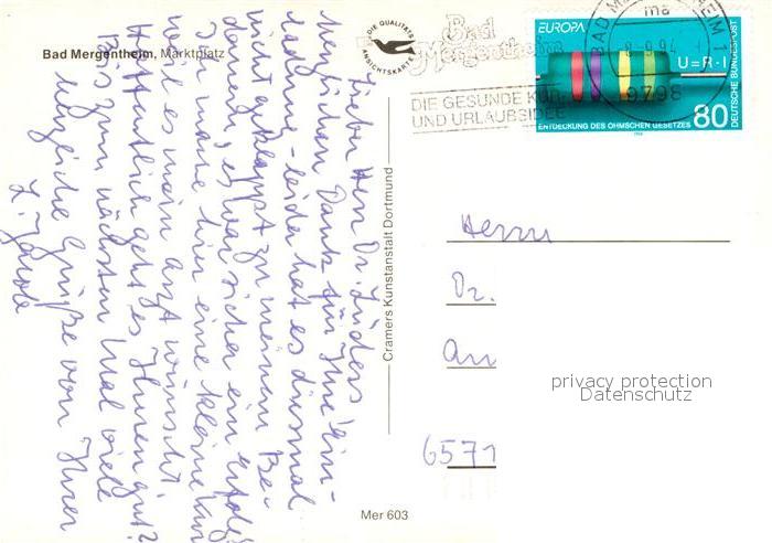 73152614 alte Postkarte Bad Mergentheim Marktplatz Brunnen Altstadt postalisch gelaufen Erhaltung siehe scans [FriedD77] KatCode: 11110008128007