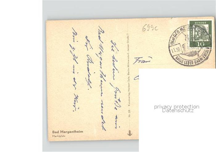 41620128 alte Postkarte Bad Mergentheim Marktplatz Brunnen Autos postalisch gelaufen Erhaltung siehe scans KatCode: 11110008128007