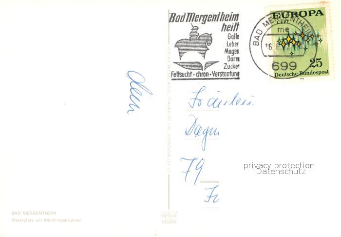 72972620 alte Postkarte Bad Mergentheim Marktplatz Fachwerkhaeuser Milchlingsbrunnen postalisch gelaufen Erhaltung siehe scans [FriedD77] KatCode: 11110008128007