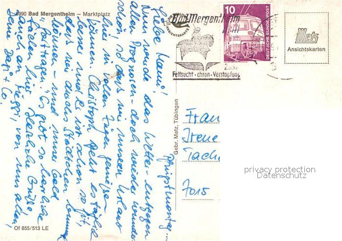72970240 alte Postkarte Bad Mergentheim Marktplatz Laterne postalisch gelaufen Erhaltung siehe scans [FriedD77] KatCode: 11110008128007