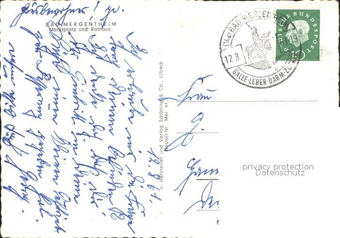 71991370 alte Postkarte Bad Mergentheim Marktplatz Rathaus postalisch gelaufen Erhaltung siehe scans KatCode: 11110008128007