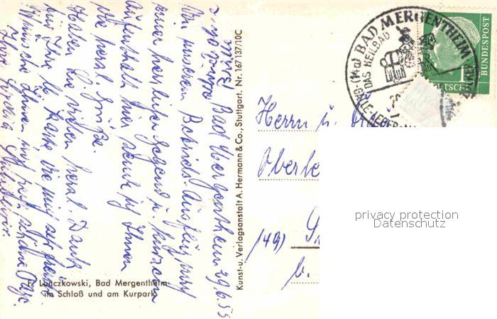 72866609 alte Postkarte Bad Mergentheim Marktplatz Rathaus Deutschmeister Schloss postalisch gelaufen Erhaltung siehe scans [NatalD47] KatCode: 11110008128007