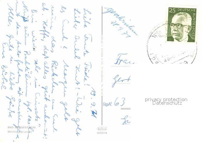 72629264 alte Postkarte Bad Mergentheim Milchlingsbrunnen postalisch gelaufen Erhaltung siehe scans [WerneD78] KatCode: 11110008128007