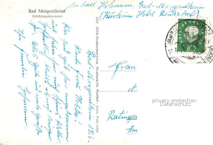72972436 alte Postkarte Bad Mergentheim Milchlingsbrunnen postalisch gelaufen Erhaltung siehe scans [NatalD47] KatCode: 11110008128007