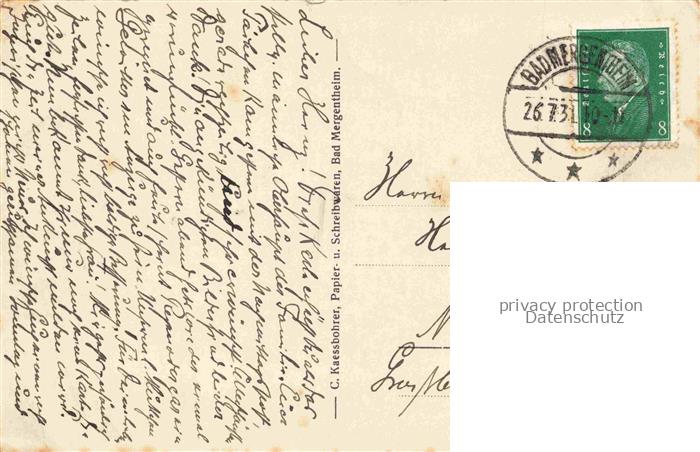 74036614 alte Postkarte BAD MERGENTHEIM Oberer Marktplatz postalisch gelaufen Erhaltung siehe scans [WerneD78] KatCode: 11110008128007