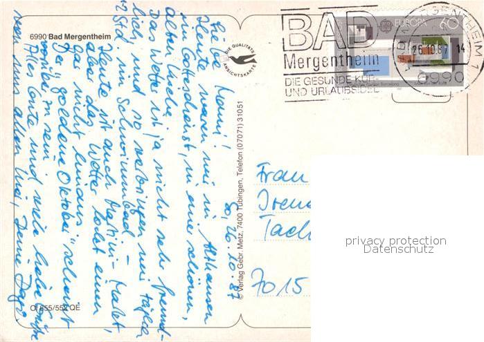 72970231 alte Postkarte Bad Mergentheim Ortsansicht mit Kirche Platz Laterne Parkanlage Fontaene postalisch gelaufen Erhaltung siehe scans [FriedD77] KatCode: 11110008128007