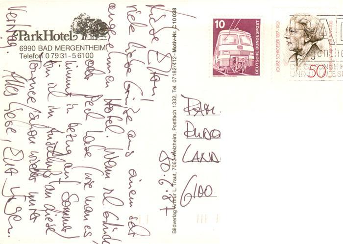 73878439 alte Postkarte Bad Mergentheim Park Hotel postalisch gelaufen Erhaltung siehe scans [WerneD78] KatCode: 11110008128007