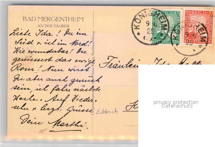 72750095 alte Postkarte Bad Mergentheim Partie am Bach Blick zur Kirche postalisch gelaufen Erhaltung siehe scans [FriedD77] KatCode: 11110008128007