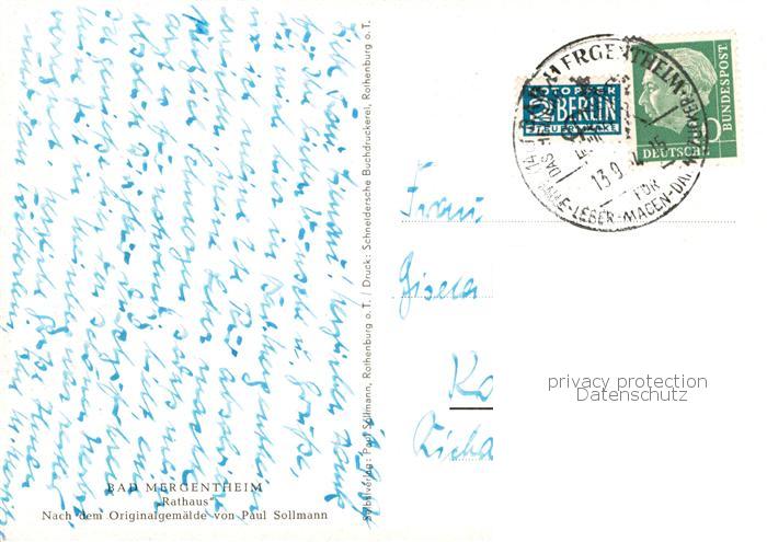 73804207 Bad Mergentheim Rathaus Kuenstlerkarte postalisch nicht gelaufen Erhaltung siehe scans [FriedD77] KatCode: 11110008128007