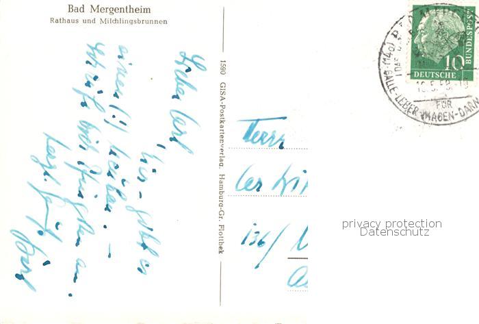 73804428 alte Postkarte Bad Mergentheim Rathaus und Milchlingsbrunnen postalisch gelaufen Erhaltung siehe scans [WerneD78] KatCode: 11110008128007