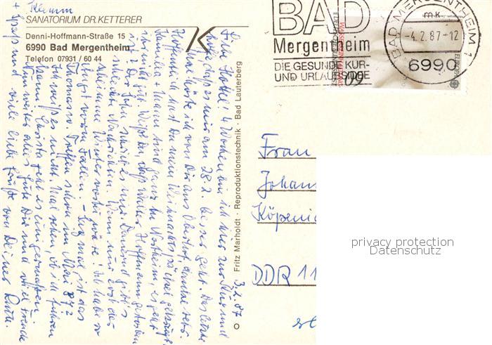 73859237 alte Postkarte Bad Mergentheim Sanatorium Dr Ketterer postalisch gelaufen Erhaltung siehe scans [WerneD78] KatCode: 11110008128007