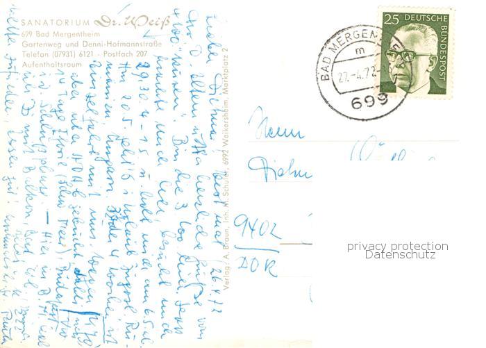 73838079 alte Postkarte Bad Mergentheim Sanatorium Dr. Weiss Aufenthaltsraum postalisch gelaufen Erhaltung siehe scans [FriedD77] KatCode: 11110008128007