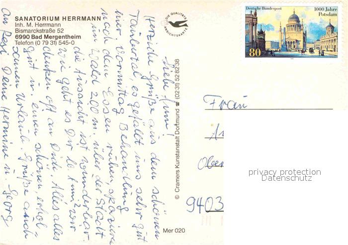 72819696 Bad Mergentheim Sanatorium Herrmann postalisch nicht gelaufen Erhaltung siehe scans [NatalD47] KatCode: 11110008128007