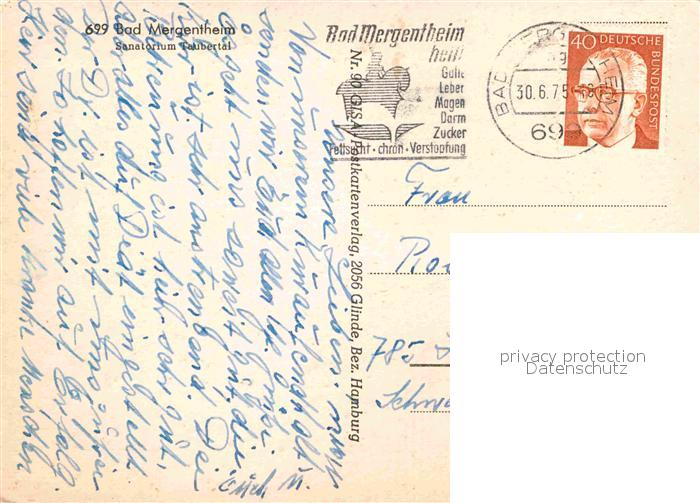 72838395 alte Postkarte Bad Mergentheim Sanatorium Taubertal postalisch gelaufen Erhaltung siehe scans [WerneD78] KatCode: 11110008128007