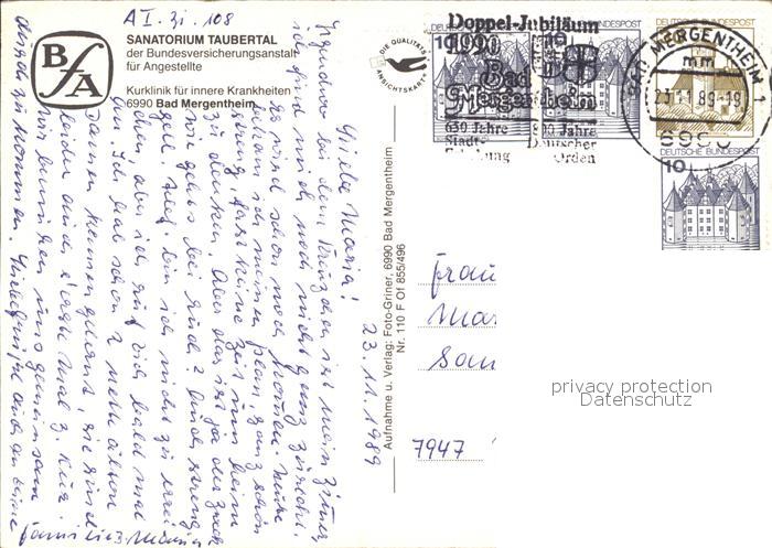 alte Postkarte Bad Mergentheim Sanatorium Taubertal postalisch gelaufen Erhaltung siehe scans