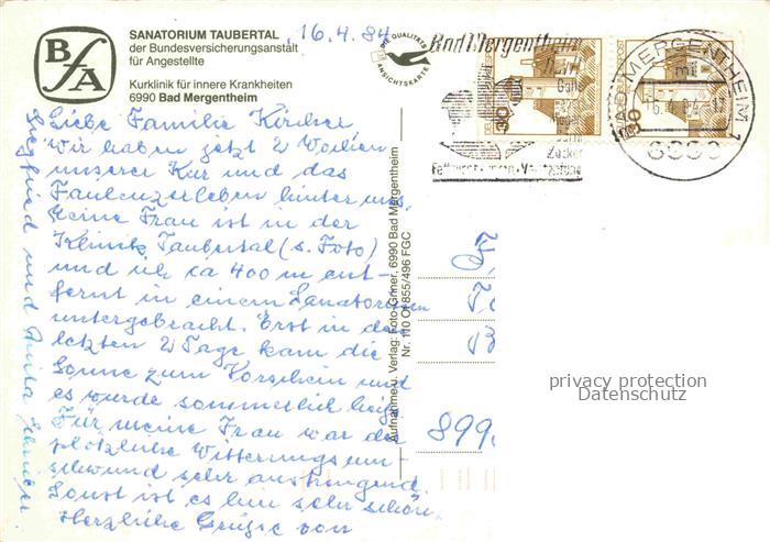 74084724 alte Postkarte BAD MERGENTHEIM Sanatorium Taubertal Gymnastik Liegewiese Panorama Terrasse Speisesaal Billard Foyer postalisch gelaufen Erhaltung siehe scans [WerneD78] KatCode: 11110008128007